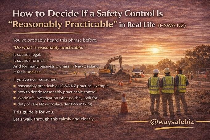 If you would like practical, editable templates to help guide reasonably practicable decisions and demonstrate compliance with health and safety obligations in NZ — our Way Safe Biz DIY Compliance Bundle is currently being developed (designed for NZ & Australia, adaptable worldwide).